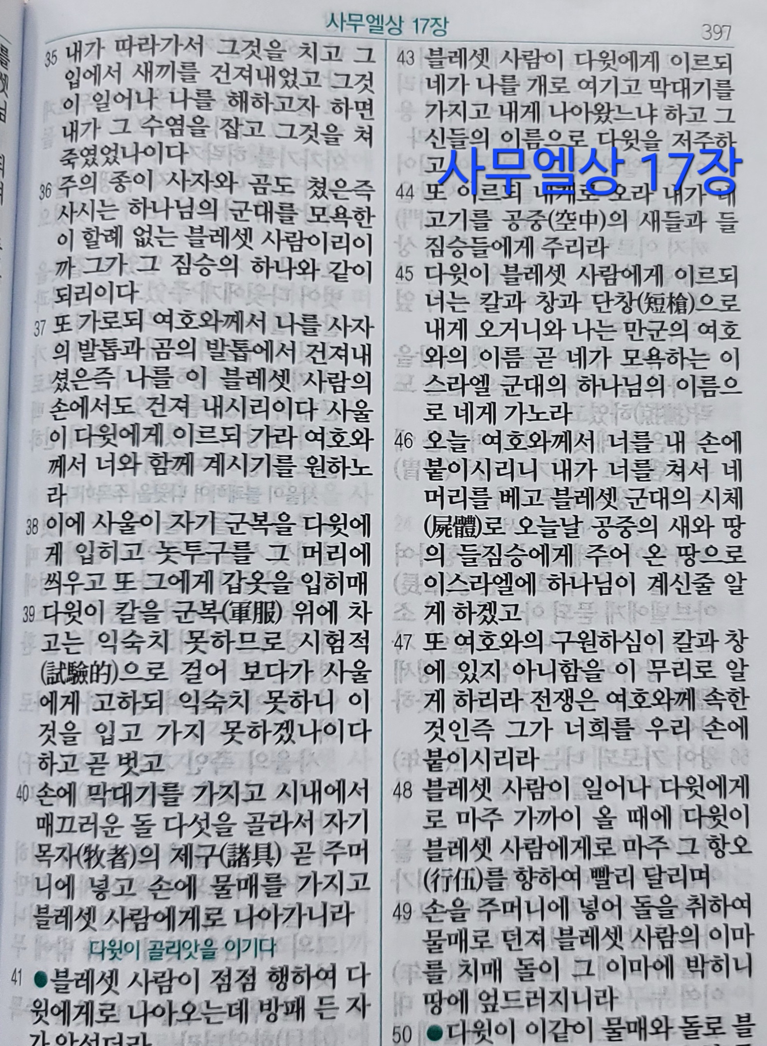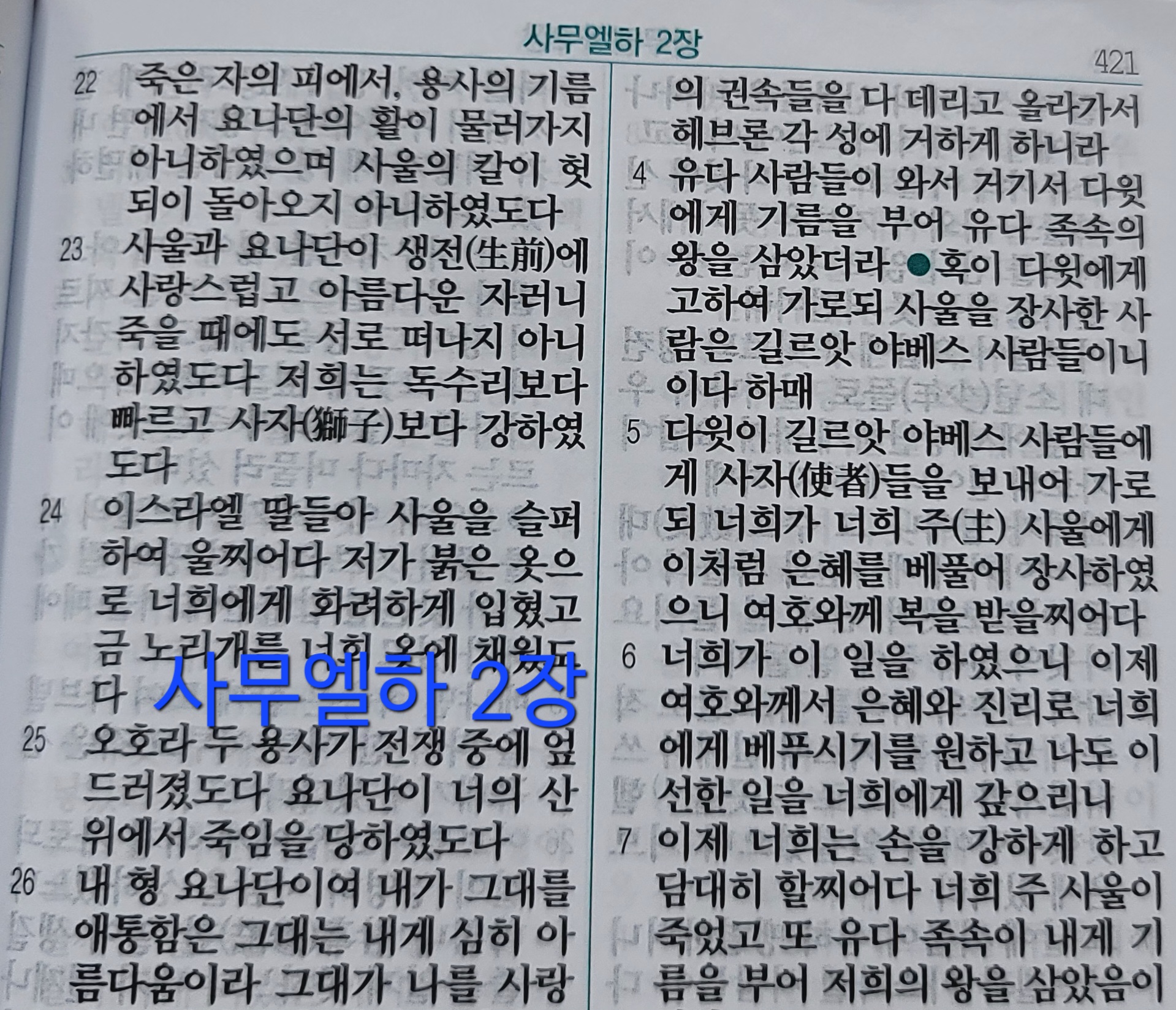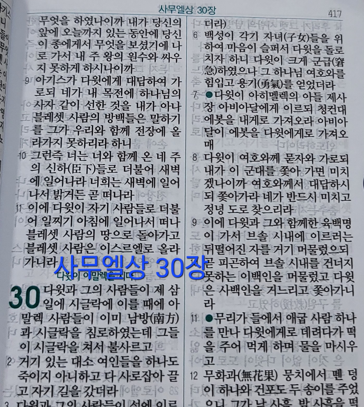 하나님께 선택받은 다윗이 왕이된 이후 한 행동27. 다윗왕은 블레셋(팔레스타인)과의 전쟁에 나아갔는데, 전쟁하기 전에 다윗은 여호와 하나님께 묻고 기도하였습니다. 하나님의 말씀대로 순종하여 행동했습니다. 그리하여 전쟁에서 승리하였습니다. 사무엘하 5:17, 19~20, 23~2517이스라엘이 다윗에게 기름을 부어 이스라엘 왕을 삼았다 함을 블레셋 사람이 듣고 다윗을 찾으러 다 올라오매 다윗이 듣고 요해처로 나가니라19다윗이 여호와께 물어 가로되 내가 블레셋 사람에게로 올라가리이까 여호와께서 저희를 내 손에 붙이시겠나이까 여호와께서 다윗에게 말씀하시되 올라가라 내가 단정코 블레셋 사람을 네 손에 붙이리라 하신지라20다윗이 바알브라심에 이르러 거기서 저희를 치고 가로되 여호와께서 물을 흩음 같이 내 앞에서 ..